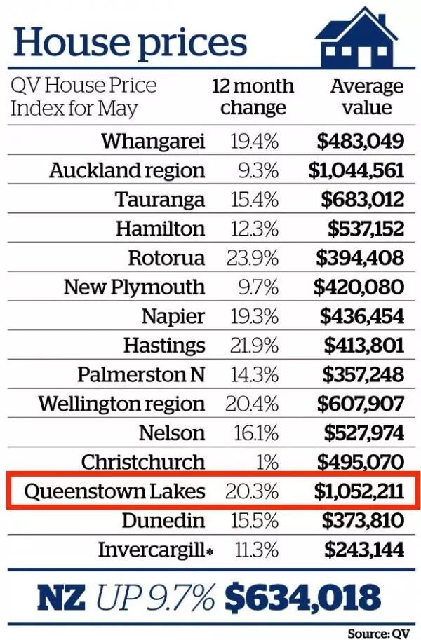 根据新西兰估价局QV6月发布的数据,皇后镇的房屋价格中位数,不仅突破了$100万纽币,甚至超过了奥克兰,成为了新西兰房价最贵的城市。