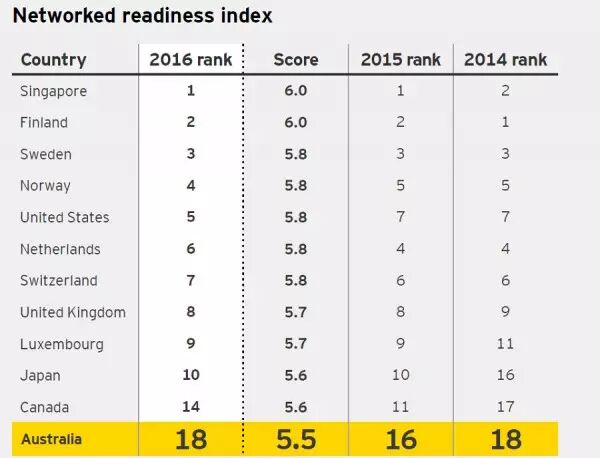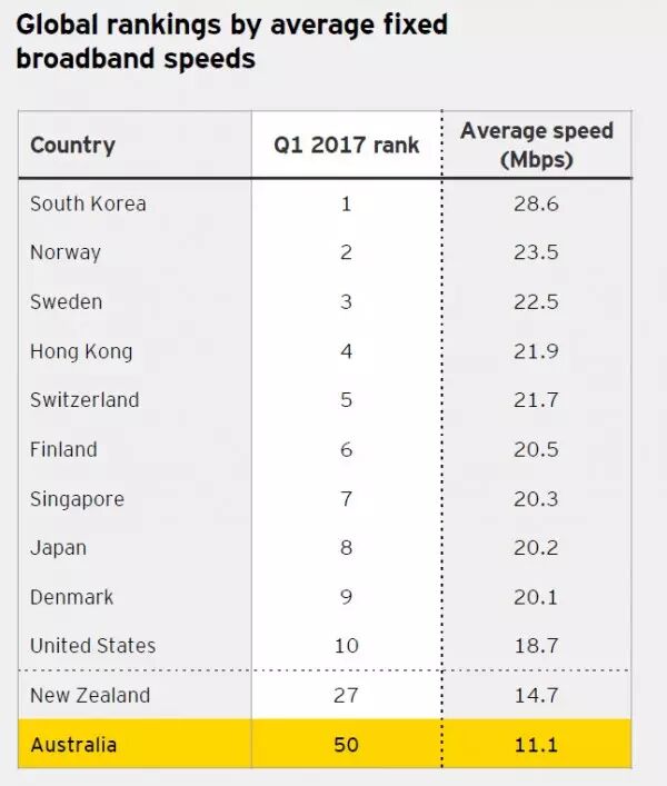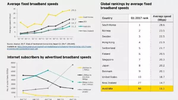澳洲人最爱抱怨缓慢的网速和花费过高的网络资费,但这一“永恒”的抱怨可能不仅仅是澳洲人茶余饭后的“消遣活动”,已经成为了国家的重大问题。 根据《数字澳洲:全国状况报告》(Digital Australia: State of the Nation)第三版显示,在世界经济论坛的网络接入指数中,澳洲的排名又下降了两位。 目前,澳洲在该指数的139个国家中名列第18位,该指数主要衡量信息和通信技术对经济和社会的影响。 尽管澳洲的排名与2014年持平,但在全球排名中有所下滑,因为其他国家的技术更先进。 报告中写道:“澳洲在信息通信技术的个人使用方面取得了很好的成绩,在全球移动宽带普及率排名达到了第10位。但是,固定宽带的成本却在不断增高,资费可承受性的排名较低,目前在世界排名第57位。” 尽管澳洲的平均固定宽带速度达到创纪录的11.1Mbps,但在全球排行榜上,澳洲与那些排名前段的国家之间的距离已经拉大,就宽带速度而言,澳洲排名全球第50位。 澳洲的邻居新西兰的平均固定宽带速度为14.7Mbps,排在世界第27位,韩国在网速排名中拔得头筹,韩国的网速比澳洲快近3倍。就移动宽带而言,澳洲的排名更好,平均下载速度为15.7 Mbps,在全球排名第11位。 相比于澳洲,国内的网速简直让我们感到幸福!而移动端的4G网速也是快的飞起,就是资费还是比较贵~